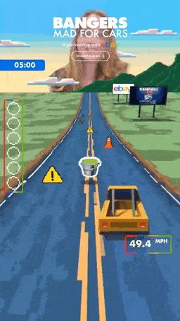 a 2023 lens project for a reality show presented by Ebay and Channel 4 called Bangers: Mad for Cars, based on snapchat. the user is to experience a peep of the reality show as a game (runner). i was the one who handled and edited the storyboard, as well as the artistic direction on a co-production (+ creation of the assets).